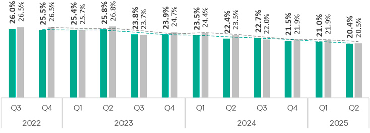 En contraste, Brasil (18%) y Chile (19%) registran niveles más moderados, mientras que Colombia (16%) y Costa Rica (14%) muestran un descenso sostenido, reflejando avances en protección y concientización.