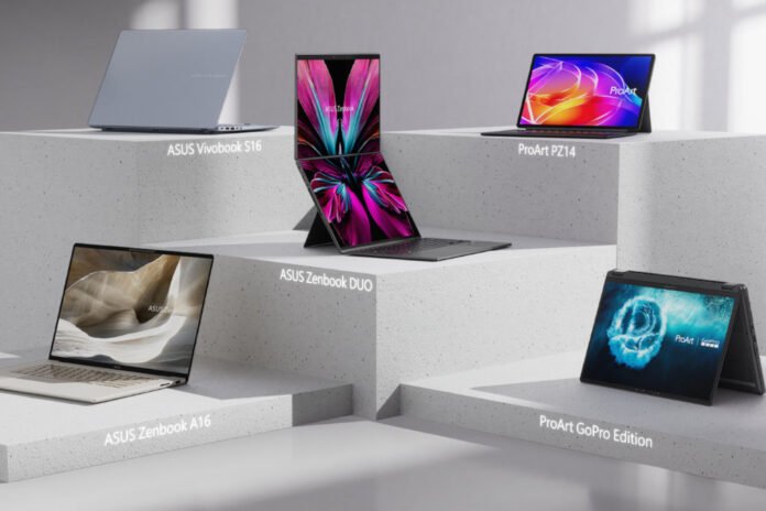 Los lanzamientos incluyen la Zenbook A16 (UX3607), la Zenbook DUO 2026 (UX8407) y la ProArt GoPro Edition (PX13), tres equipos orientados a distintos perfiles de usuarios pero con un eje común: rendimiento avanzado con foco en IA.