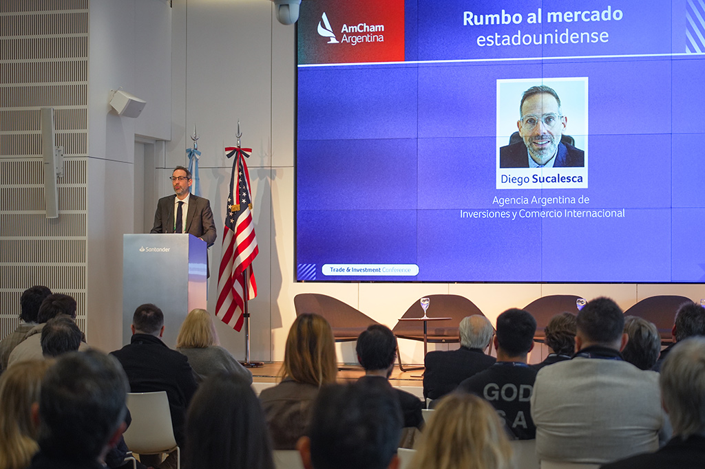 “Las relaciones entre Argentina y Estados Unidos se dan en un marco extraordinario e histórico que, en el último tiempo, mejora el clima de negocios entre ambas naciones”, asegura Sucalesca al pronunciar un discurso en el encuentro Trade & Investment Conference: rumbo al mercado estadounidense, organizado por la Cámara de Comercio de los Estados Unidos en Argentina (AmCham Argentina).