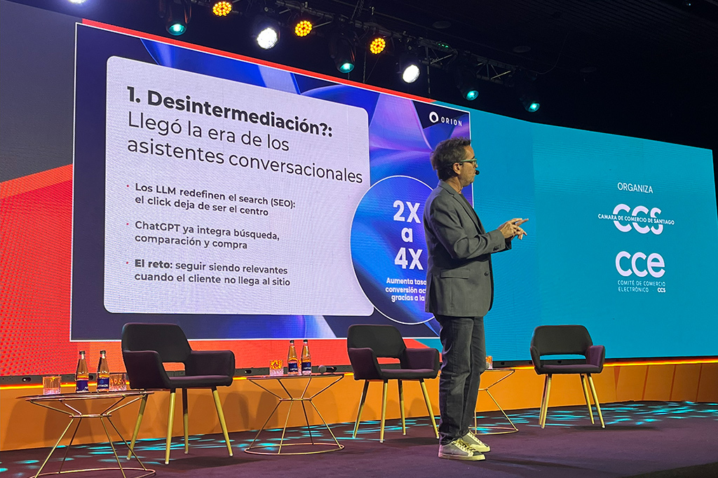 De acuerdo con datos presentados por Orión, aunque hoy solo el 0,24% del tráfico web proviene de asistentes como ChatGPT, su tasa de conversión (4,87%) ya supera la del tráfico orgánico tradicional (4,6%), reflejando una tendencia clara hacia la interacción conversacional y la compra asistida.