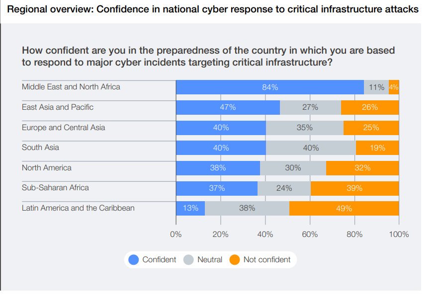 De acuerdo con el análisis, casi la mitad de los ejecutivos en Latam dice no confiar en la capacidad de sus países para responder a ataques cuyo objetivo sea infraestructura crítica.