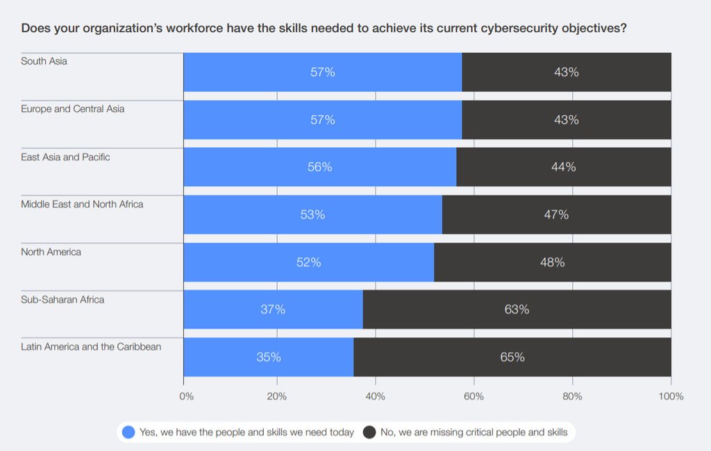 Por otra parte, el reporte del WEF y Accenture muestra también que las empresas latinoamericanas son en el mundo las que más sufren escasez de talento en ciberseguridad.