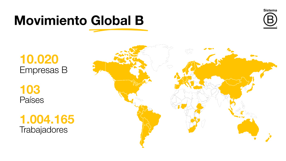 La certificación, otorgada por B Lab, nació en 2006 en Estados Unidos y comenzó a expandirse al mundo en 2012, con la creación de Sistema B. Hoy, el Movimiento B alcanza a 1.004.165 trabajadores de 10.020 Empresas B Certificadas en 103 países.