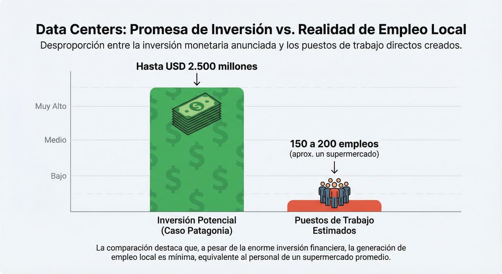 “Un data center no crea más allá del boom de la construcción más de unos cientos de trabajos. Estamos hablando de 150 a 200 empleos”, precisó.