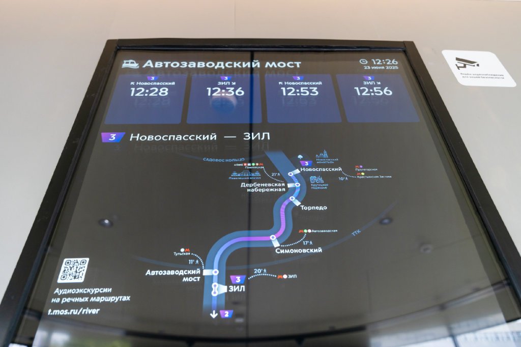 En la ruta fluvial «Novospasskiy – ZIL» se han instalado paneles digitales con horarios en tiempo real y banderas de navegación.