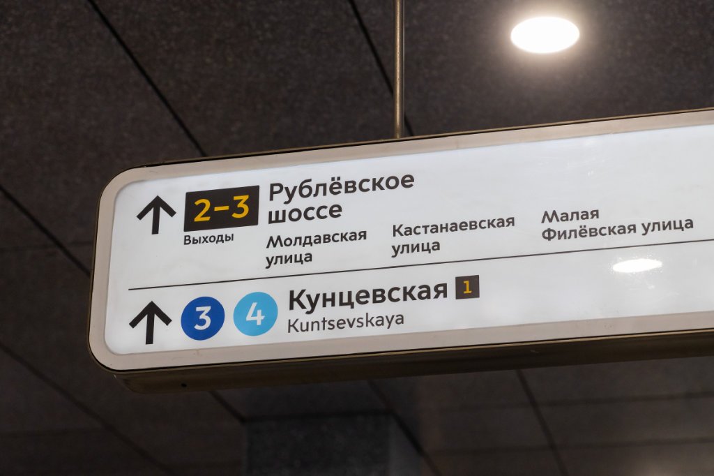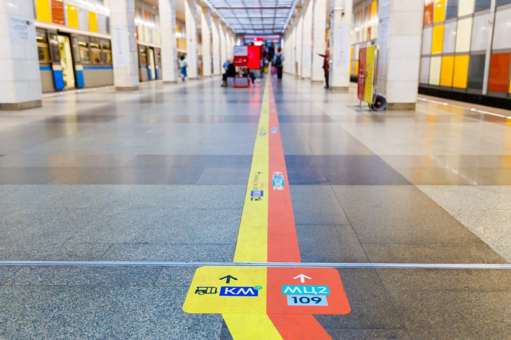 De forma temporal, durante el cierre de un tramo de la Línea 1, se probó con éxito en la estación «Salaryevo» una señalización de suelo con códigos de colores para orientar a los pasajeros hacia los autobuses de sustitución.