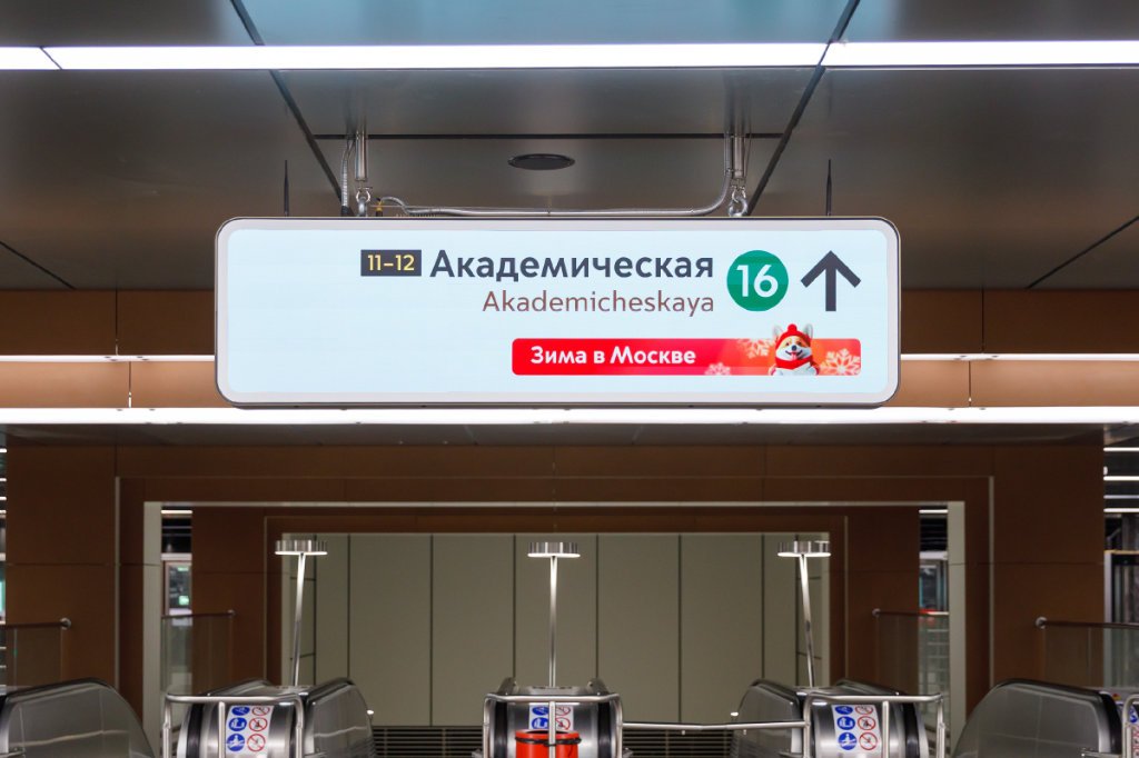 El transbordo entre «Akademicheskaya» de las Líneas 16 y 6 se ha convertido en el primer punto de intercambio completamente «digital». El número de señales digitales en el metro se ha más que duplicado (superando las 130 unidades) y permite actualizar la información de forma remota.