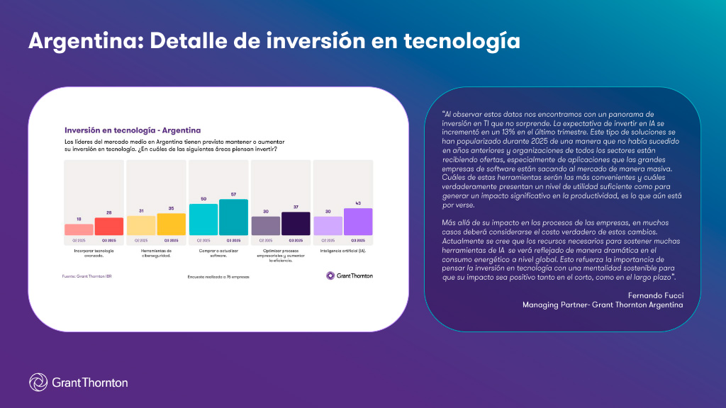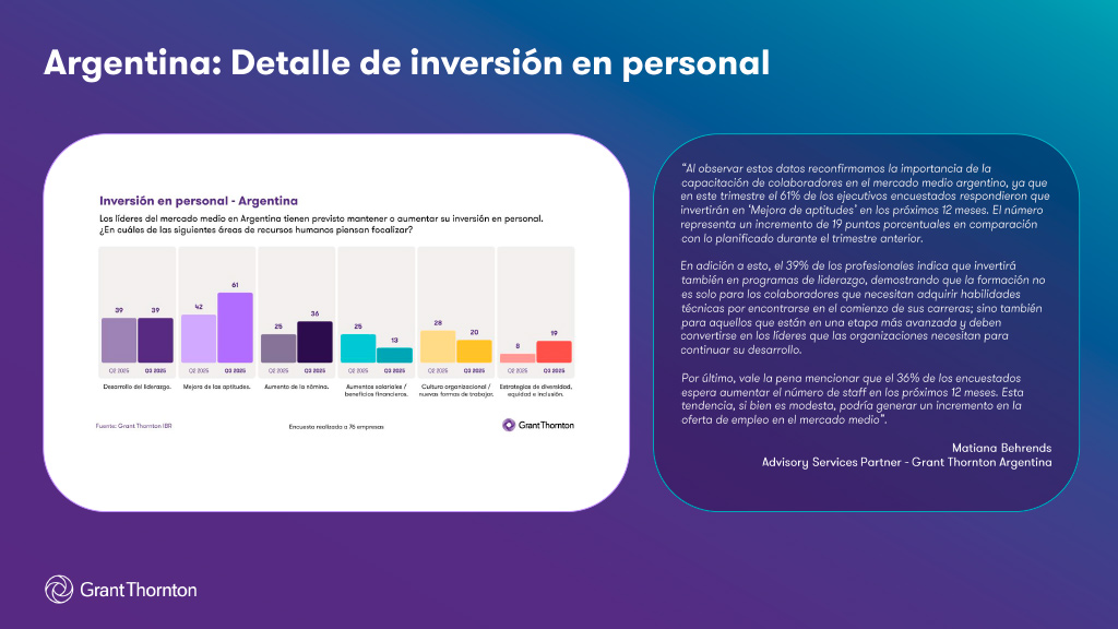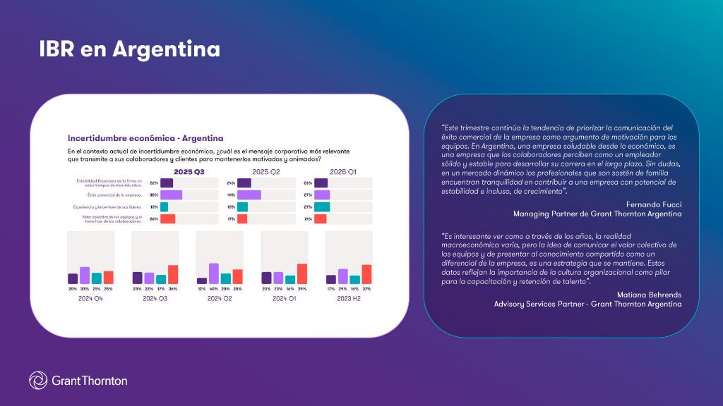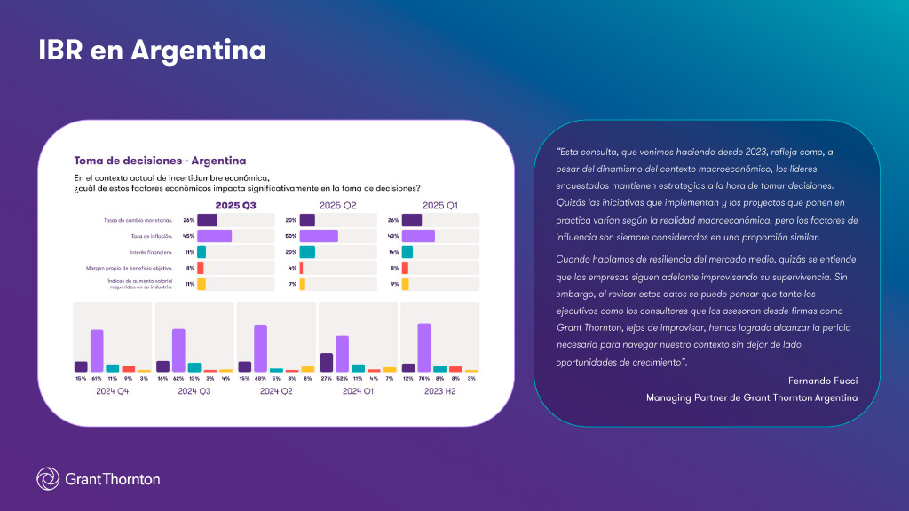 La confianza empresarial argentina se mantuvo en 74% en el 3T 2025, según el IBR de Grant Thornton.
