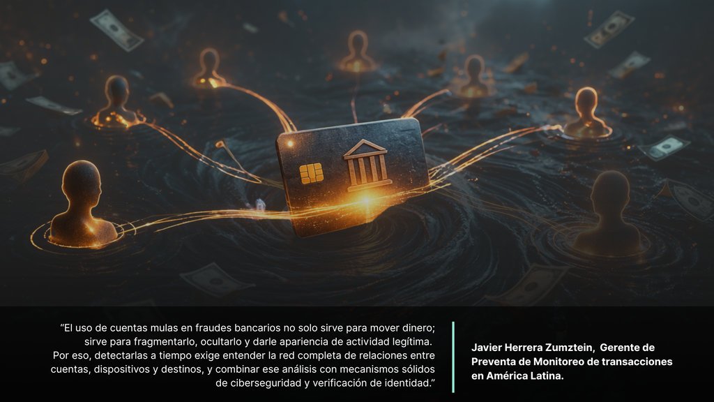 “El uso de cuentas mulas en fraudes bancarios obliga a conectar identidad, dispositivo, transacción y relaciones entre cuentas en un mismo caso”, completó.