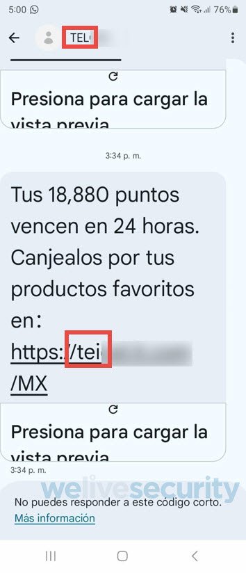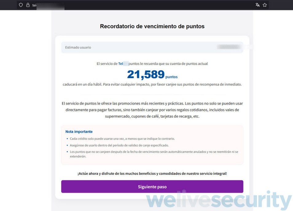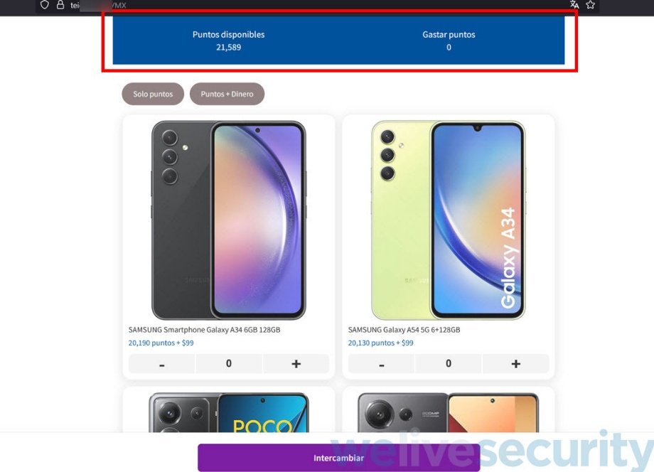 El gancho de estos mensajes falsos era un supuesto canje de puntos acumulados por productos, el engaño dirigía a las víctimas a una URL que simulaba pertenecer a la empresa legítima y prometía celulares o smartwatches a cambio de esos puntos, y solicitaba ingresar información financiera.