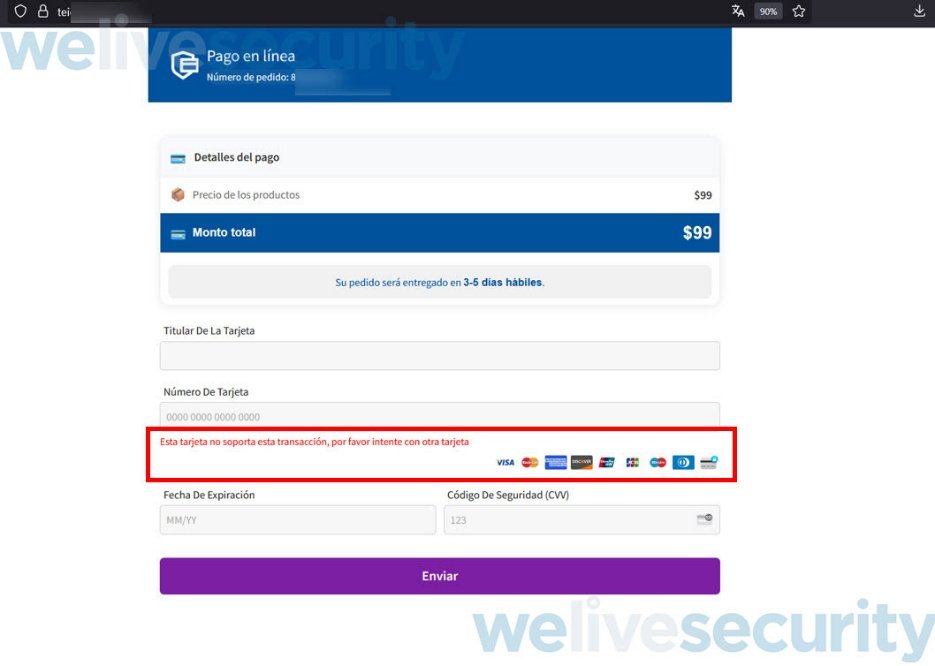 En esta ocasión, el pretexto es un mensaje como: “Esta tarjeta no soporta esta transacción, por favor intente con otra tarjeta”, con el fin de mantener la credibilidad del proceso.