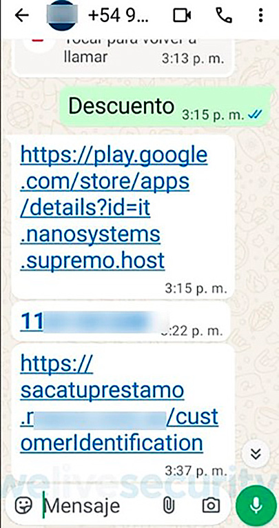 En este caso, los atacantes se hacen pasar por empleados del banco y convencen a los usuarios de descargar una aplicación bajo el pretexto de recibir los descuentos ofrecidos.
