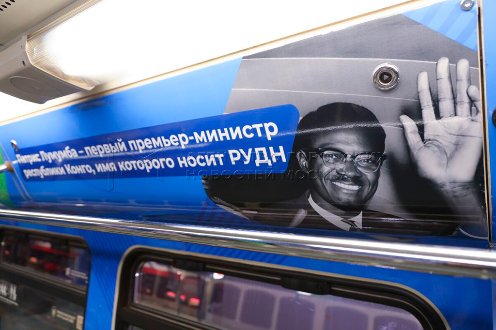 El diseño de los vagones del tren temático narra la historia de la universidad. Los pasajeros también descubren aspectos de la vida estudiantil en RUDN, sus programas internacionales, sus áreas académicas y sus logros científicos.